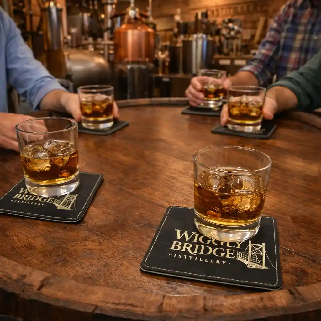 Whether you’re building a distillery gift shop, launching a branded merchandise line, or creating custom corporate gifts, this personalized coaster set combines functionality, durability, and brand visibility in one elegant product.
